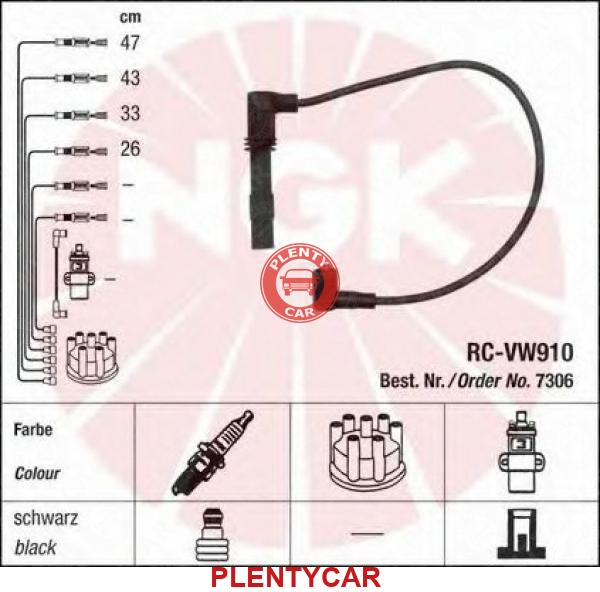 - NGK - RC-VW910 - Провода высоковольтные (комплект) - 7306&036905483G&0300890990&0986356308&DRL740 - 7306 к-т проводов высоков.VW Golf IV/Bora/Lupo/Polo,AUDI A2,SKODA Fabia 1,4-16v/1,6-16v