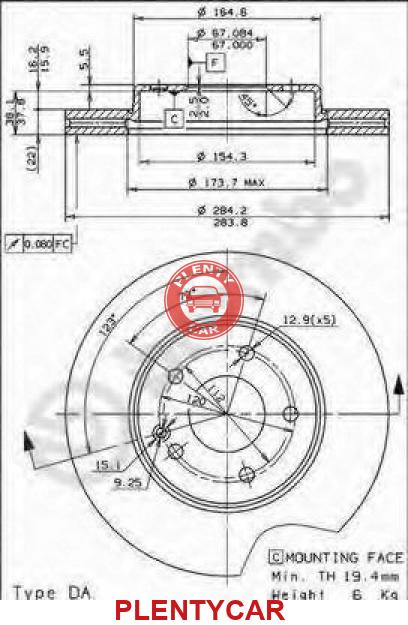 Торм.диск пер.[284x12] 5 отв.(min 2)
