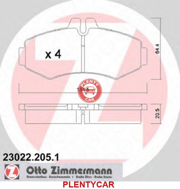 - ZIMMERMANN - 23022.205.1 - Колодки торм.пер. - 0034200120, 0252302220, 04T3078, 0986494013, 230222051, 23022209, 603980, - MERCEDES Vito V230 2.3i-2.3TD 96->