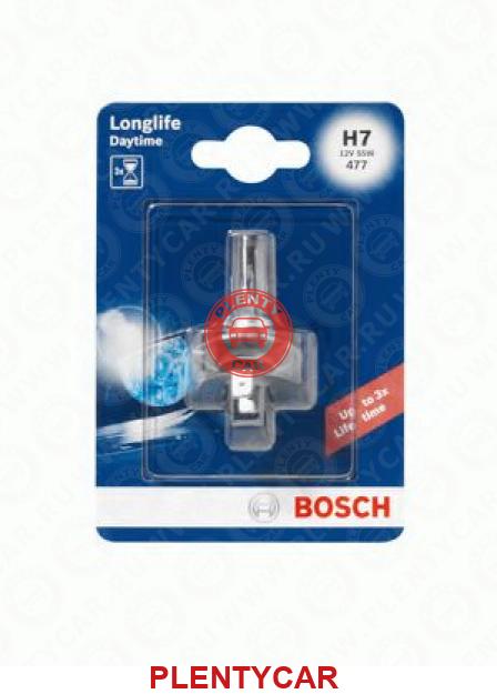 - BOSCH - 1987301057 - Лампа галогенная блистер 1шт H7 12V 55W PX26d Longlife Daytime (увеличенная светоотдача на 10% и увеличенный в три раза срок службы)