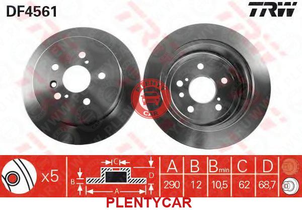 - TRW - DF4561 - Тормозной диск - 4243128120, 4243128090, 4243128091 - AVENSIS VERSO 2001 >>, ESTIMA II 2000 - 2005, PICNIC 2001 - 2006, PREVIA 2000 >>