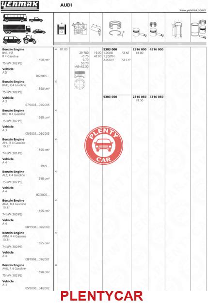 - Yenmak - 4316050 - 81,50 mmПорш+палец,скольцами - AUDI/VWBFQ/BSE/BSF/AHL/ALZ75KW(102)PS