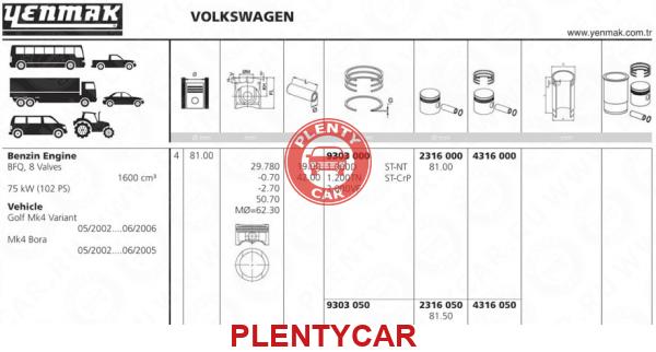 - Yenmak - 4316050 - 81,50mmПорш+палец,скольцами - 06A107065N - 99792620 - AUDI/VWBFQ/BSE/BSF/AHL/ALZ75KW(102)PS