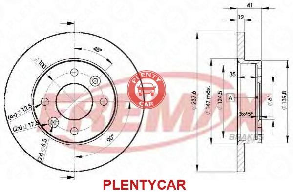 - FREMAX - BD-4705 - Диск торм. пер.[238x12] 4 отв.(MIN2) - 493906 - RENAULT 19 92-95/Clio 96-05/Logan 04->/Megane I 96->/Rapid 85-98/Super 5 84-96/Twingo 96->