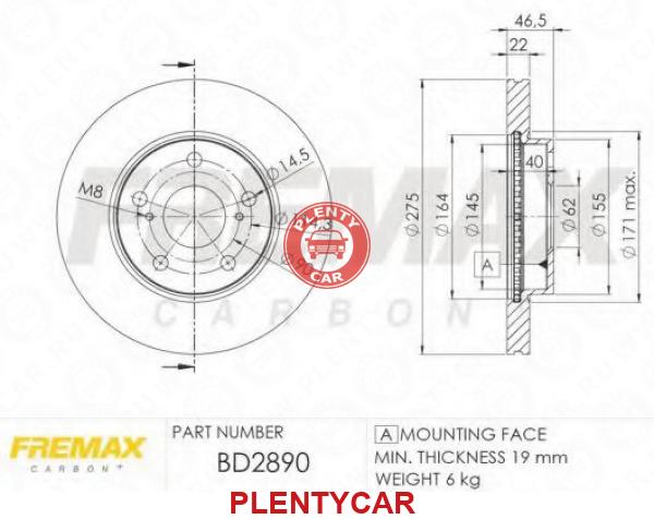 • FREMAX - BD-2890 - Диск торм. пер. вент.[275x22] 5 отв.MIN2 - 493717 - TOYOTA Auris 07->/Corolla 07->