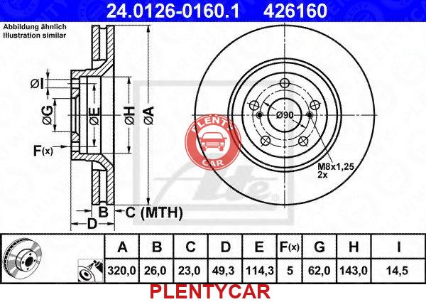 - ATE - 24.0126-0160.1 - Диск тормозной передн, TOYOTA: AVENSIS седан 2.2 D-4D 09-, AVENSIS универсал 2.2 D-4D 09-, VERSO 2.2 D-4D/2.2 D-CAT 09