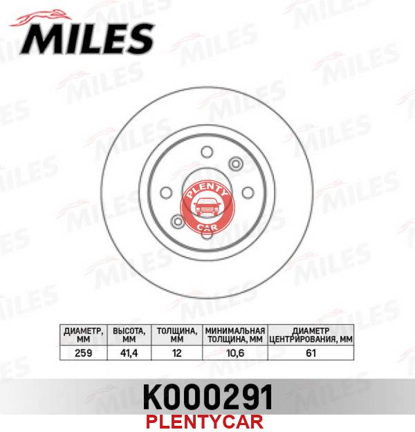 - MILES - K000291 - Диск тормозной MILES K000291 RENAULT LOGAN/SANDERO передний не вент.D=259мм.