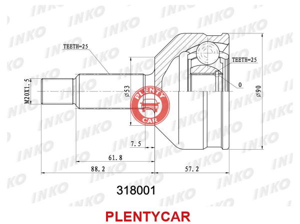 - INKO - 318001 - ШРУС внешний 25/25 | перед |