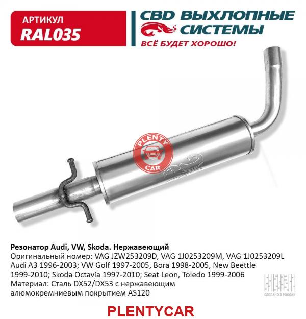 - CBD - RAL035 - Резонатор VAG Octavia, VW Golf, Jetta Audi A3