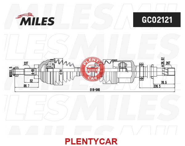 • MILES - GC02121 - Привод в сборе правый RENAULT MEGANE II 1.4-1.5D 03-09 (GSP 299071 / MILES GC02117) GC02121